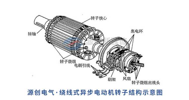 繞線式轉子:繞組和定子繞線相似,三相繞線連接成星型,三根端線連接到裝在轉軸上的三個銅滑環上,通過一組電刷與外電路相連接。