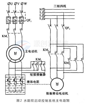 對于鼠籠式電機而言,水電阻柜有兩種方案,對于星型接法的電機,如星點能夠打開,原理與繞線式電機水阻柜的原理基本相同,對于角型接法或星點不能打開的籠型電機,水阻柜只能串接在定子回路中,電機起動完畢后,需要將水阻柜用真空接觸器隔離開,以防水阻柜長期帶電引發安全事故。