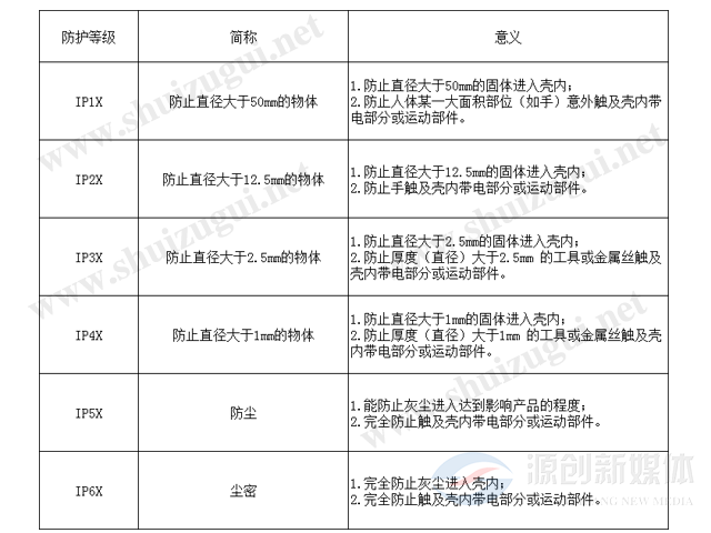 外殼、隔板及其他部分防止人體接近帶電部分和觸及運動部件以及防止外部物體侵入內(nèi)部設(shè)備的保護程度。