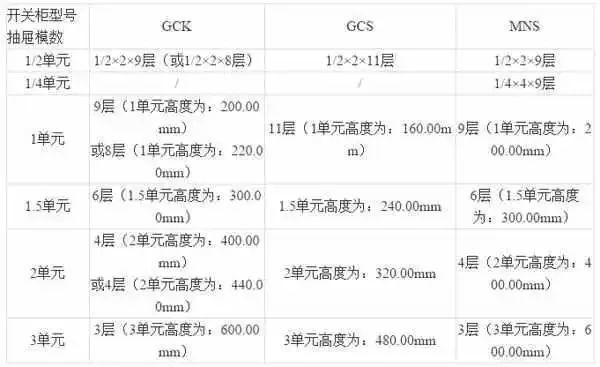 (6)了解低壓抽出式開關(guān)柜結(jié)構(gòu)(抽屜柜抽屜安裝總有效高度≤1800.00mm),詳見下表: